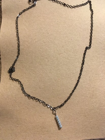 10 bead design. Swarovski bicone beads mid blue. Silver plated findings.