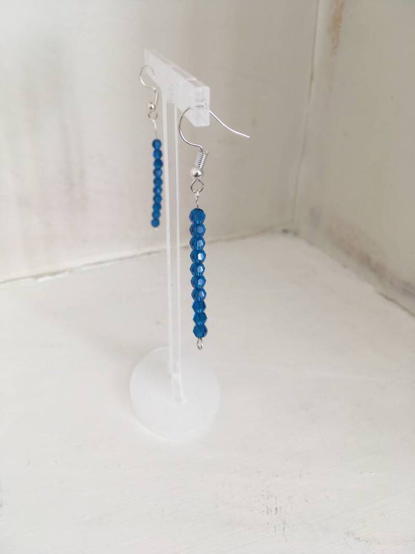 EARRINGS 10 Blue Swarovski Earrings Silver Plated Findings 10 Beads On Each Earring Faceted Beads Dangle Earrings 4 cm