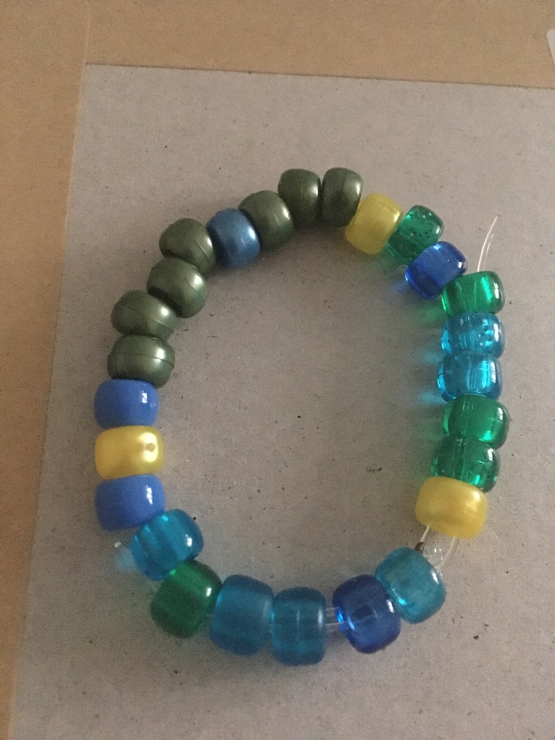 BRACELET Olive Green Blue Cream Resin Beads 14 cm With Stretch