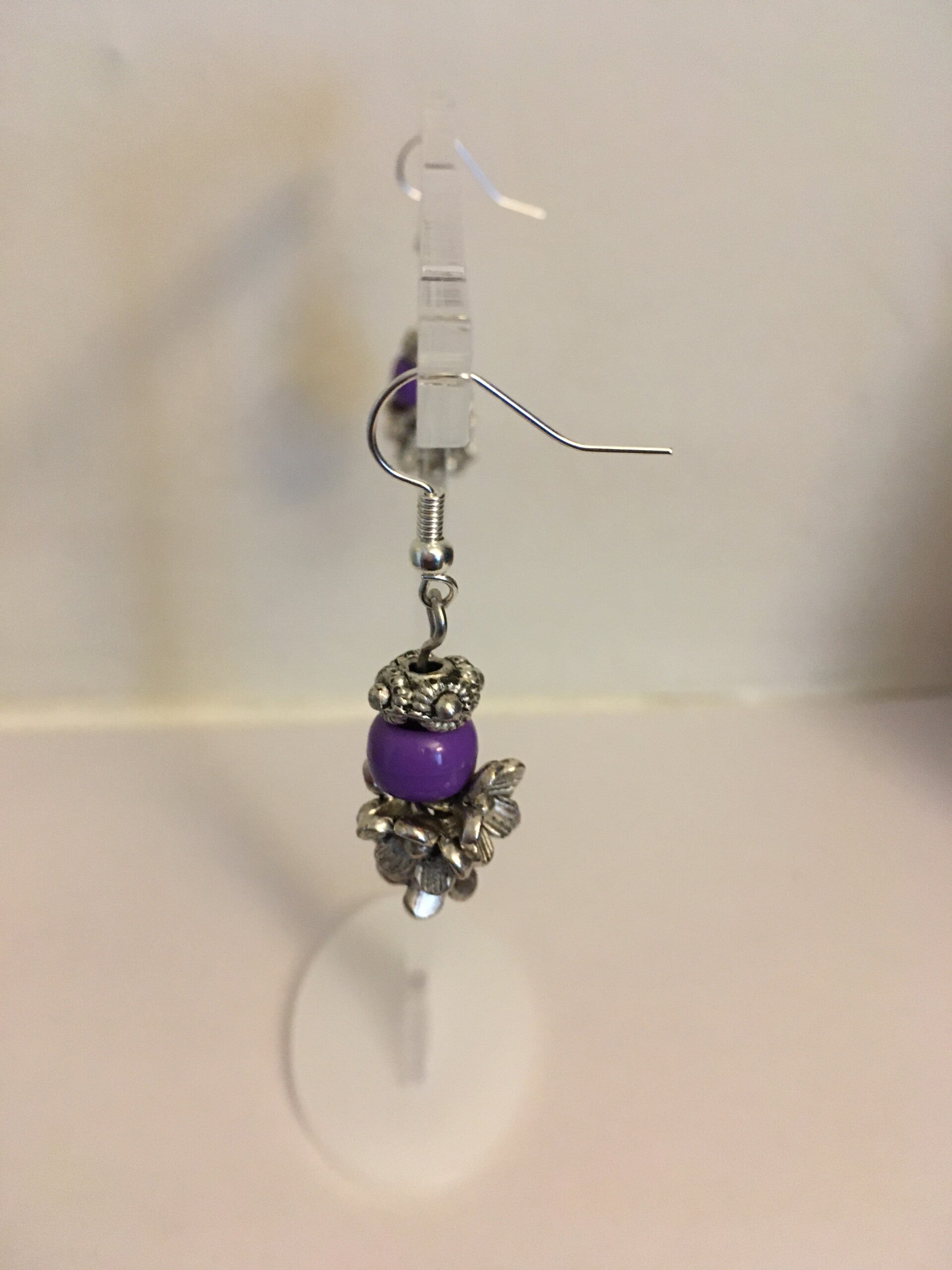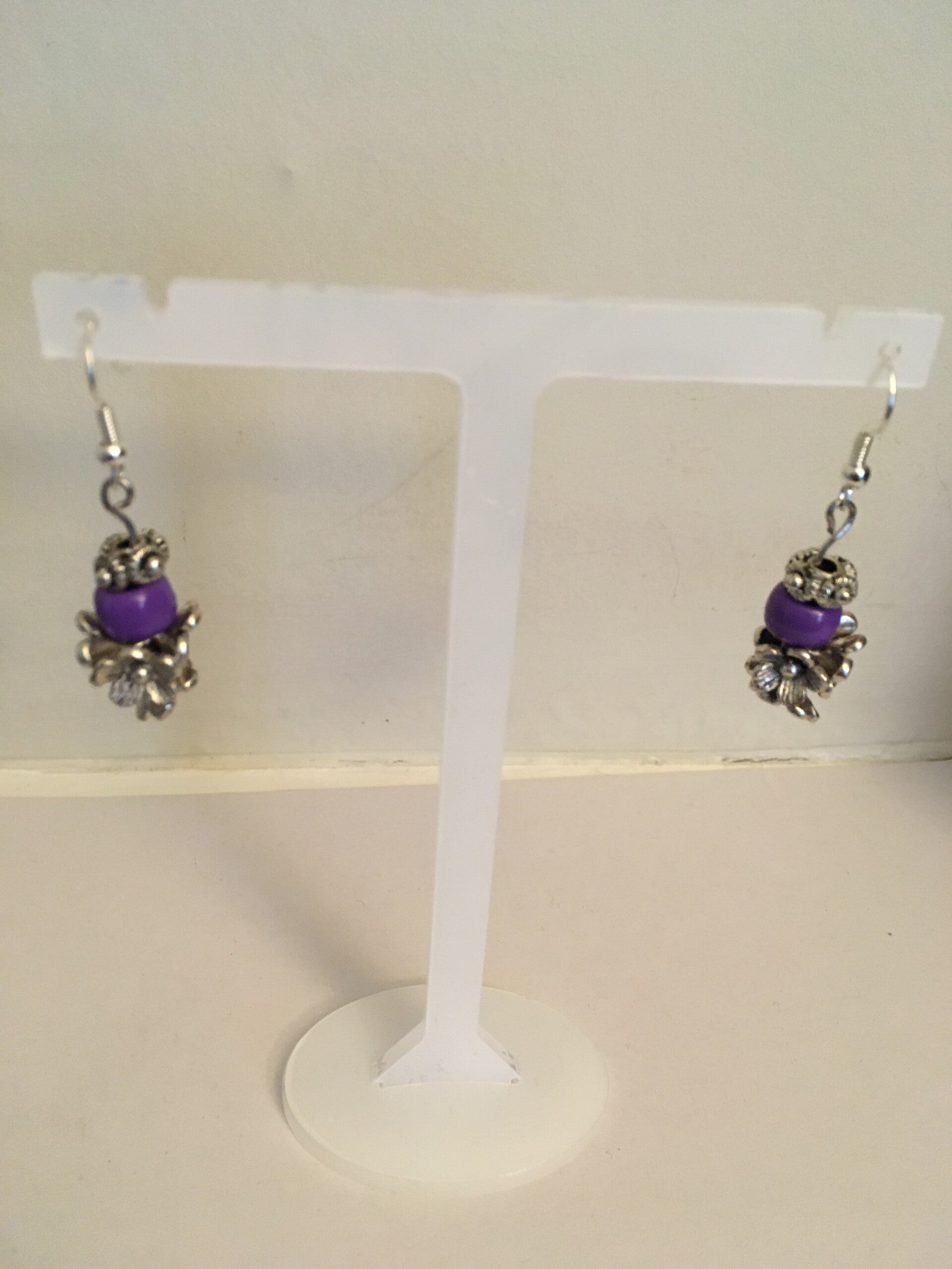 EARRINGS Mid Purple Resin And Silver Plated Floral Beads And Findings