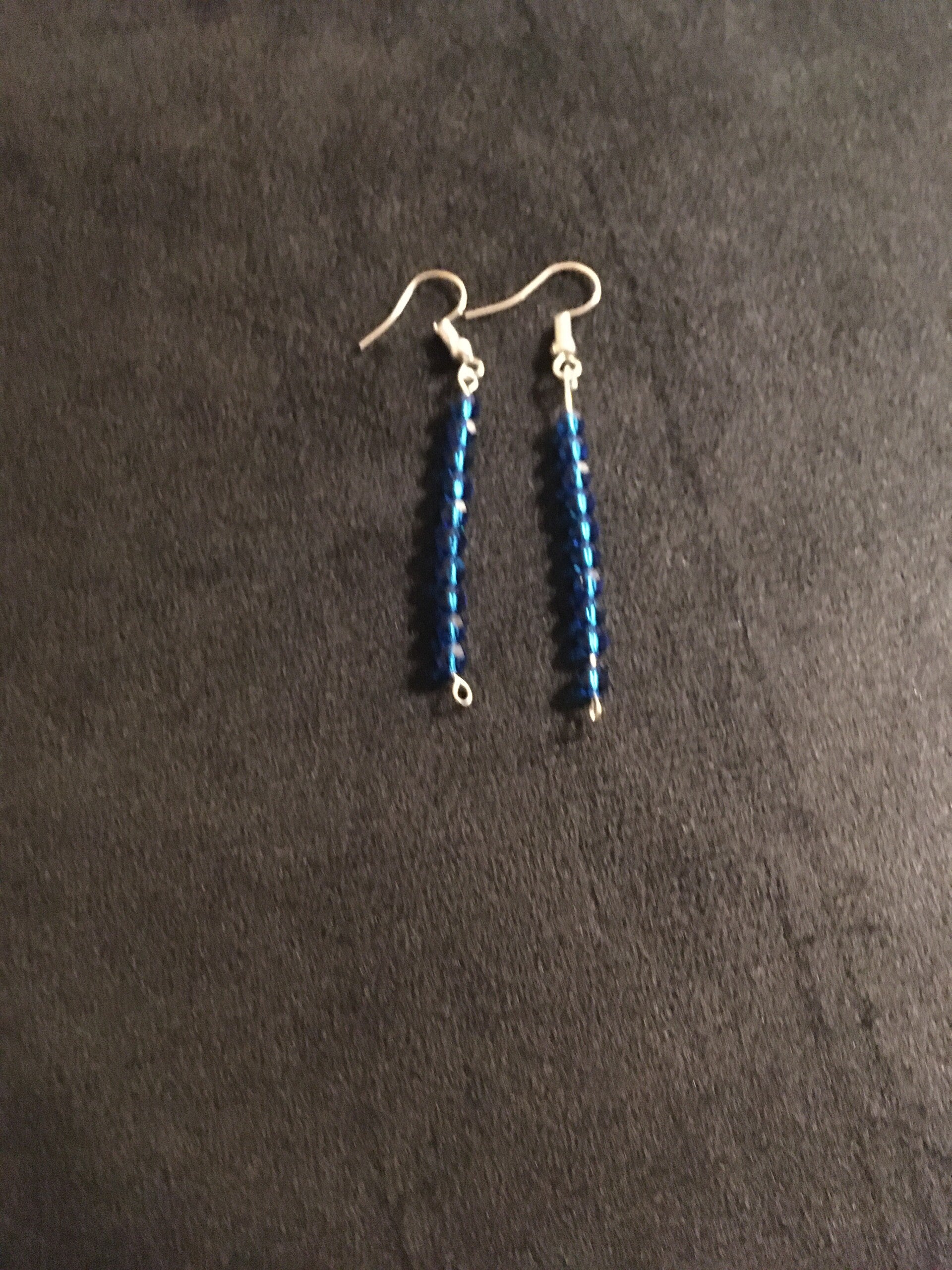 10 bead design. Swarovski bicone beads mid blue. Silver plated findings.