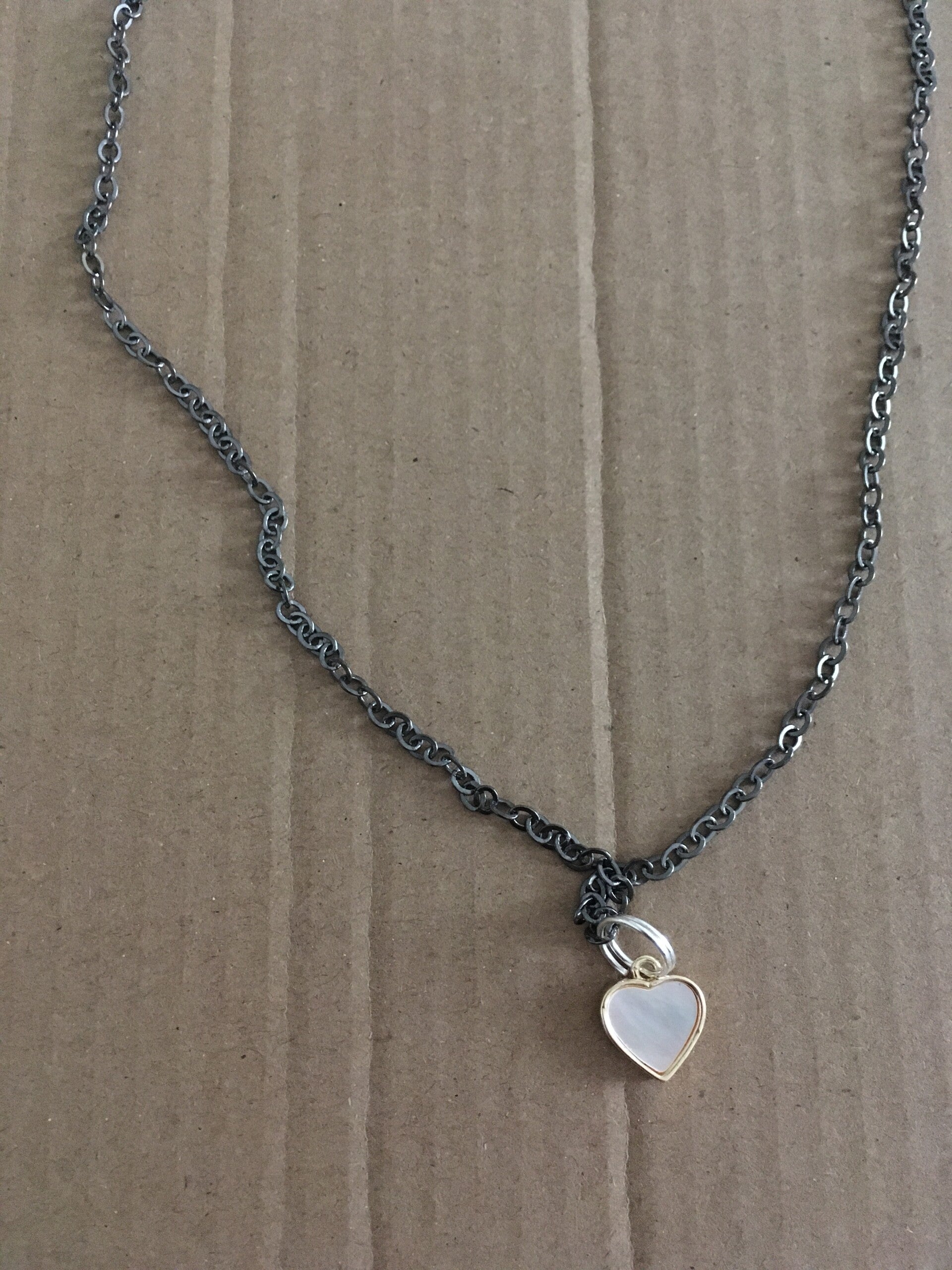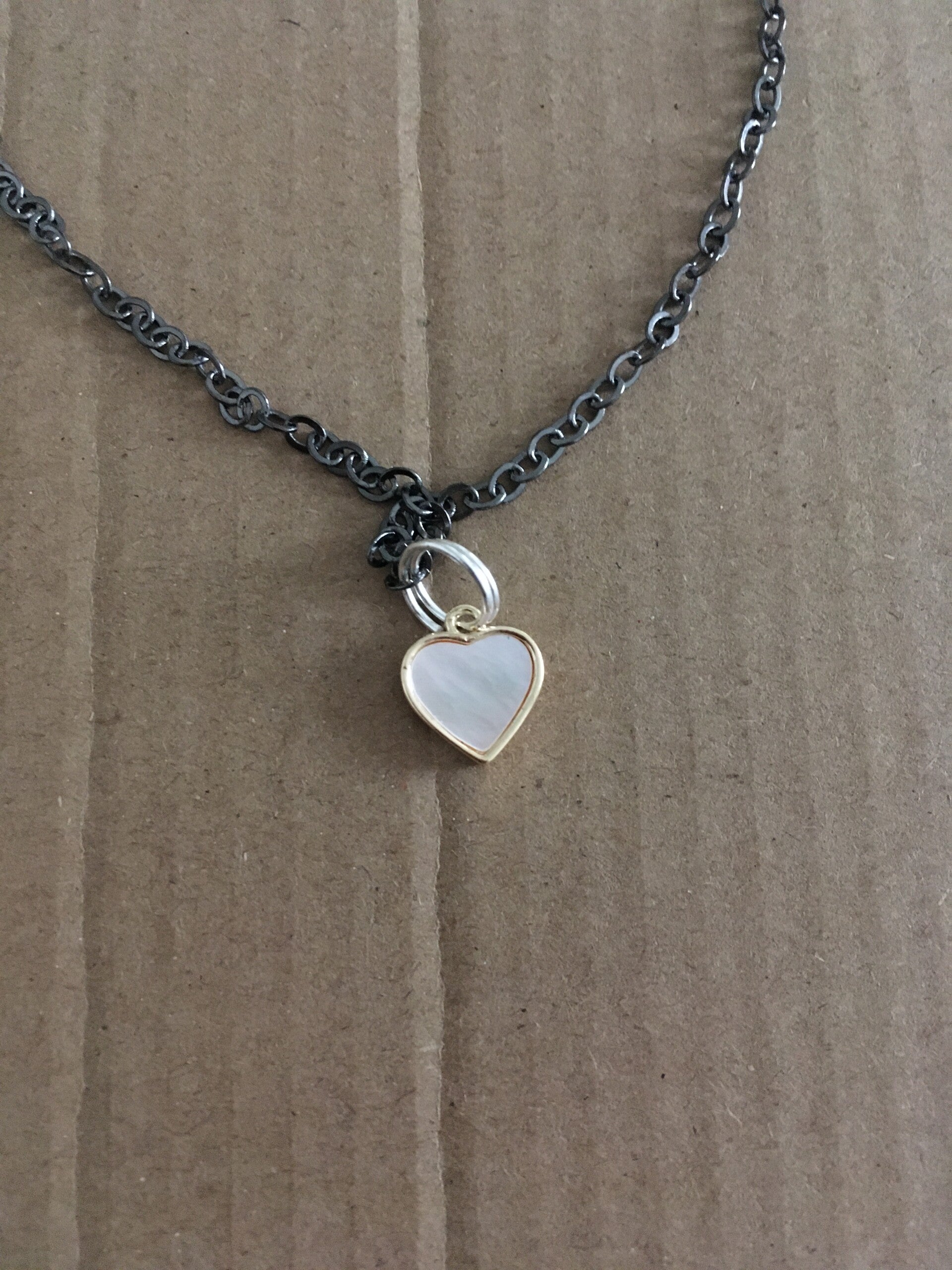 StudioAvai032 Antique Black 18” Chain Silver Plated Clasp Gold plated Heart Pendant NECKLACE